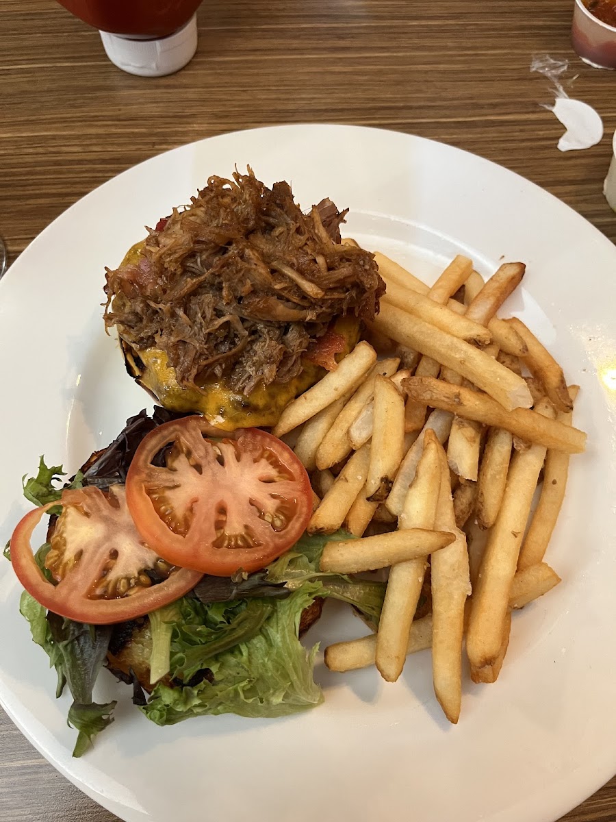Whoa, this is spacious, clean, kid friendly place. Awesome wait staff, quick service and food was amazing. Kid portion was huge. Free refill on his soda. Definitely recommend.