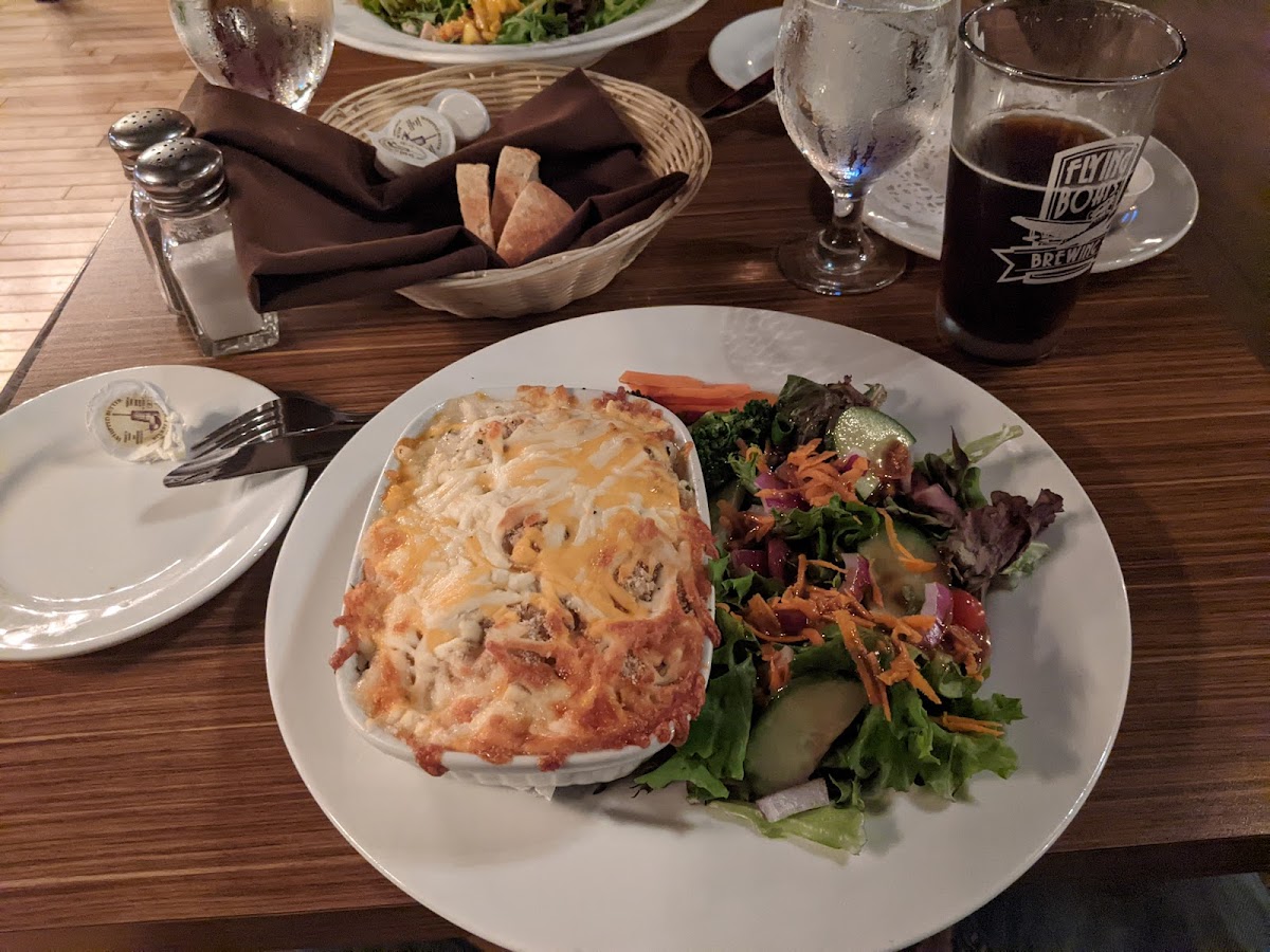 Everything about our meal was awesome. Only the brave should order the blooming onion... we only got 1/2 way through but every bite was delicious. Steak, pasta, beer from Flying Boats... everything was was superb. Highly recommend.