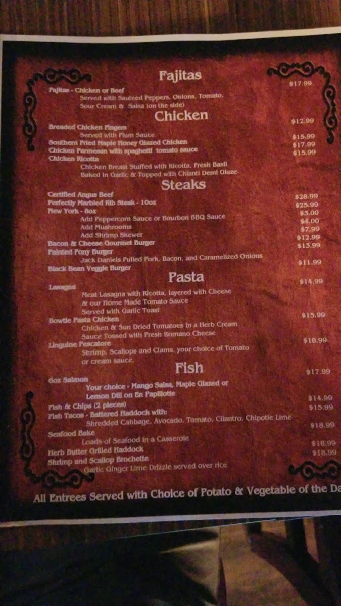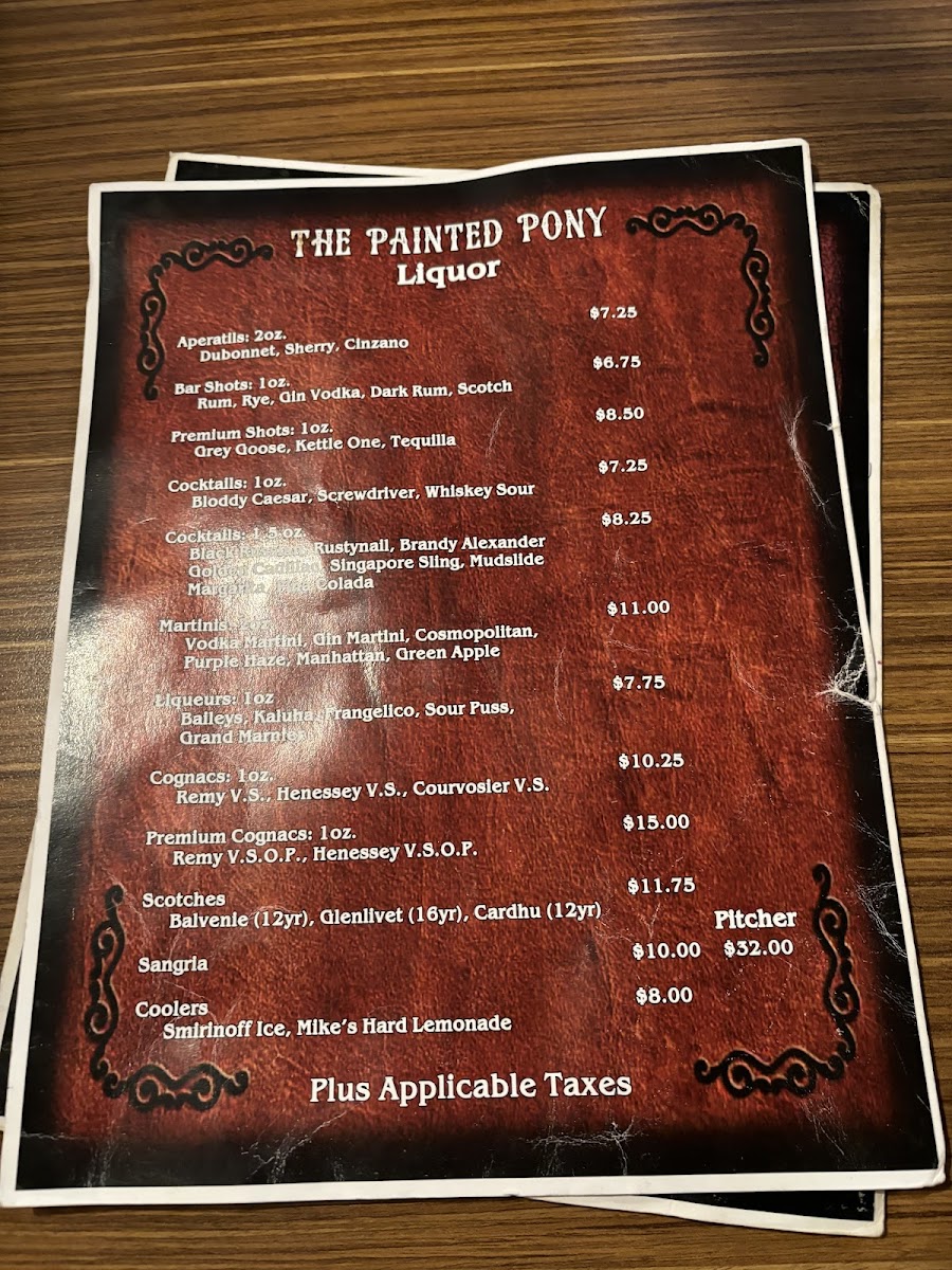 The Painted Pony Bar and Grill Menu